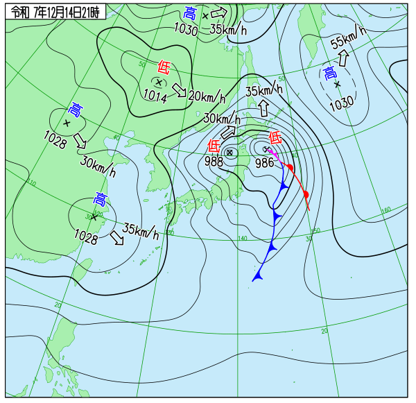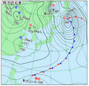低気圧が発達し、強い冬型の気圧配置。北海道中心に大荒れ。