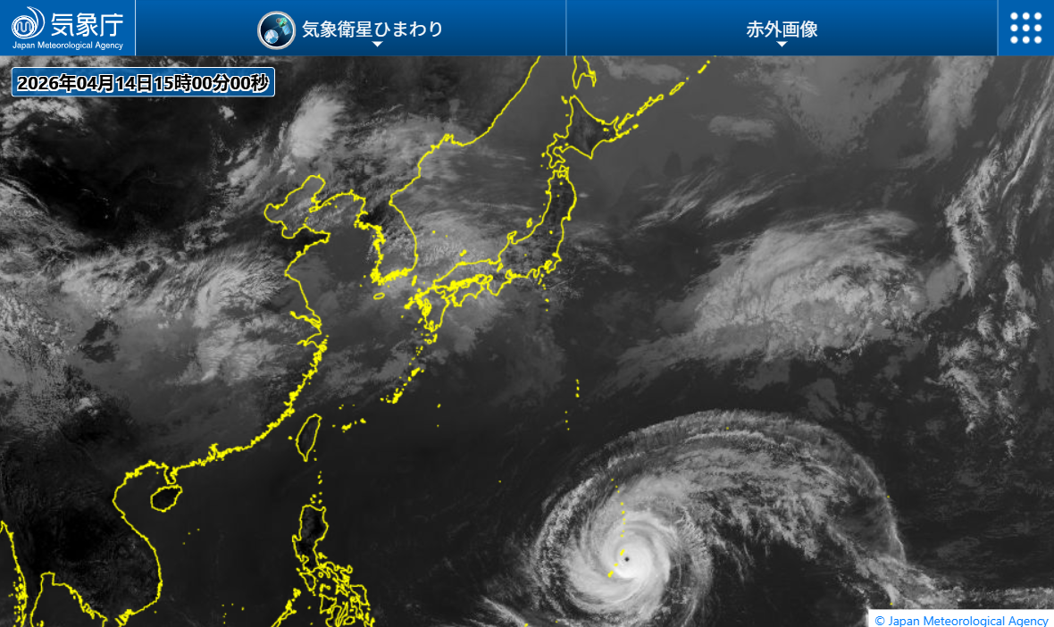 台風4号が、大型で猛烈な強さでサイパンに接近。※通過前後の15日未明~非常に強い勢力に