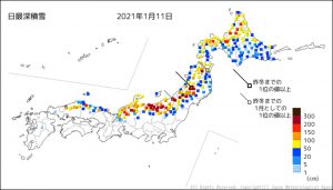 ・最深積雪…肘折(山形)292センチ、横手(秋田)189センチ
