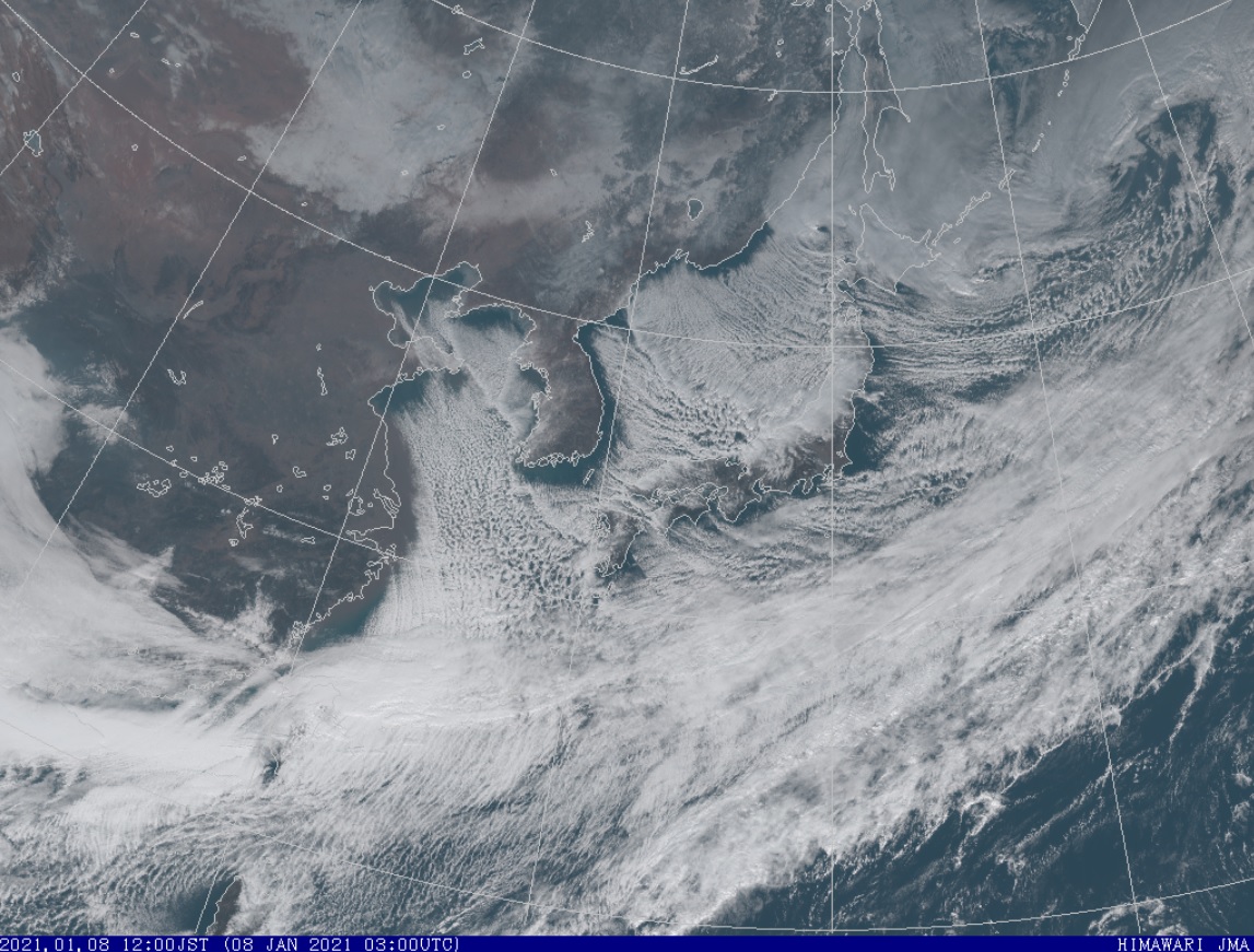 広島で黄砂観測(視程10キロ以上)。国内の1月の黄砂観測は8年ぶり。