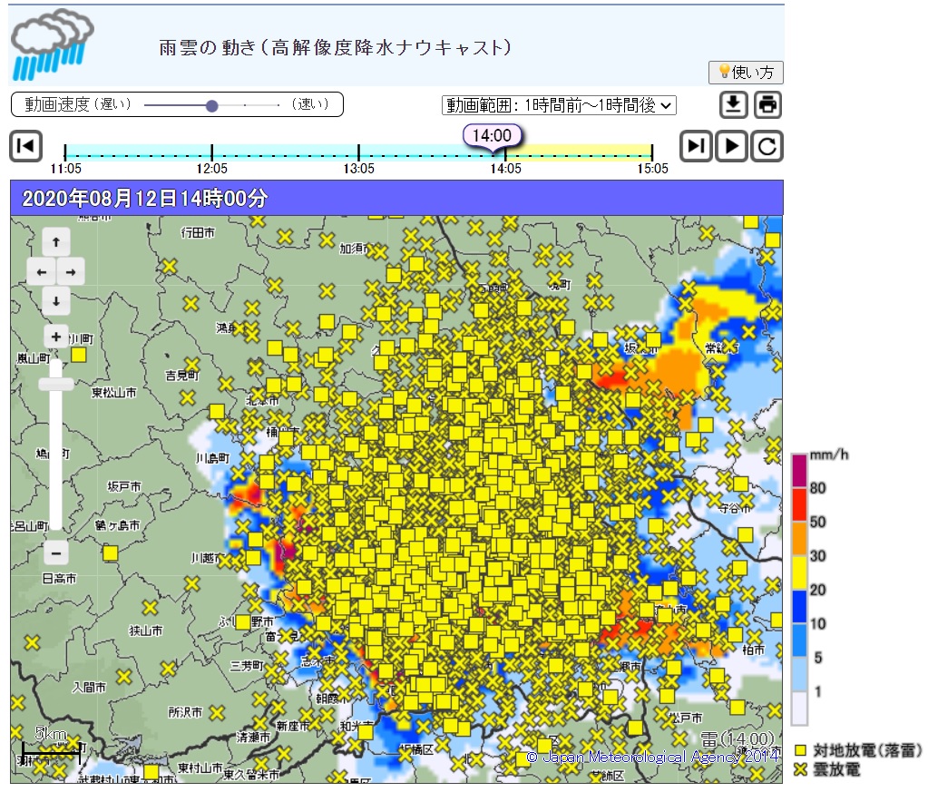 ・1時間降水量…高根沢(栃木)43.5ミリ、越谷(埼玉)25.5ミリ、東京都心21.5ミリ