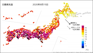 浜松で、全国の最高気温記録に並ぶ41.1℃を記録。