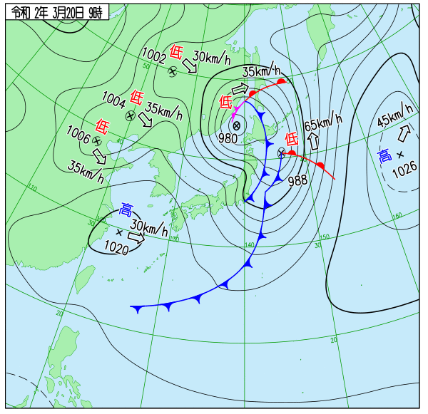 低気圧が発達し、北日本を中心に暴風に。