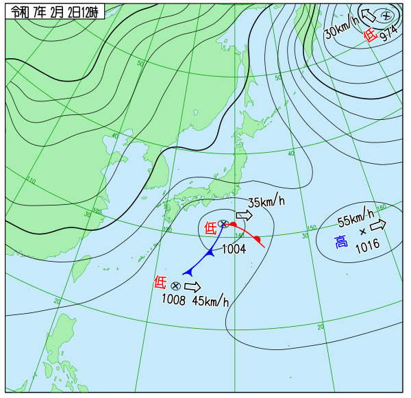 寒冷前線が日本付近を南下、日本海側を中心に各地で激しい雷雨あり。